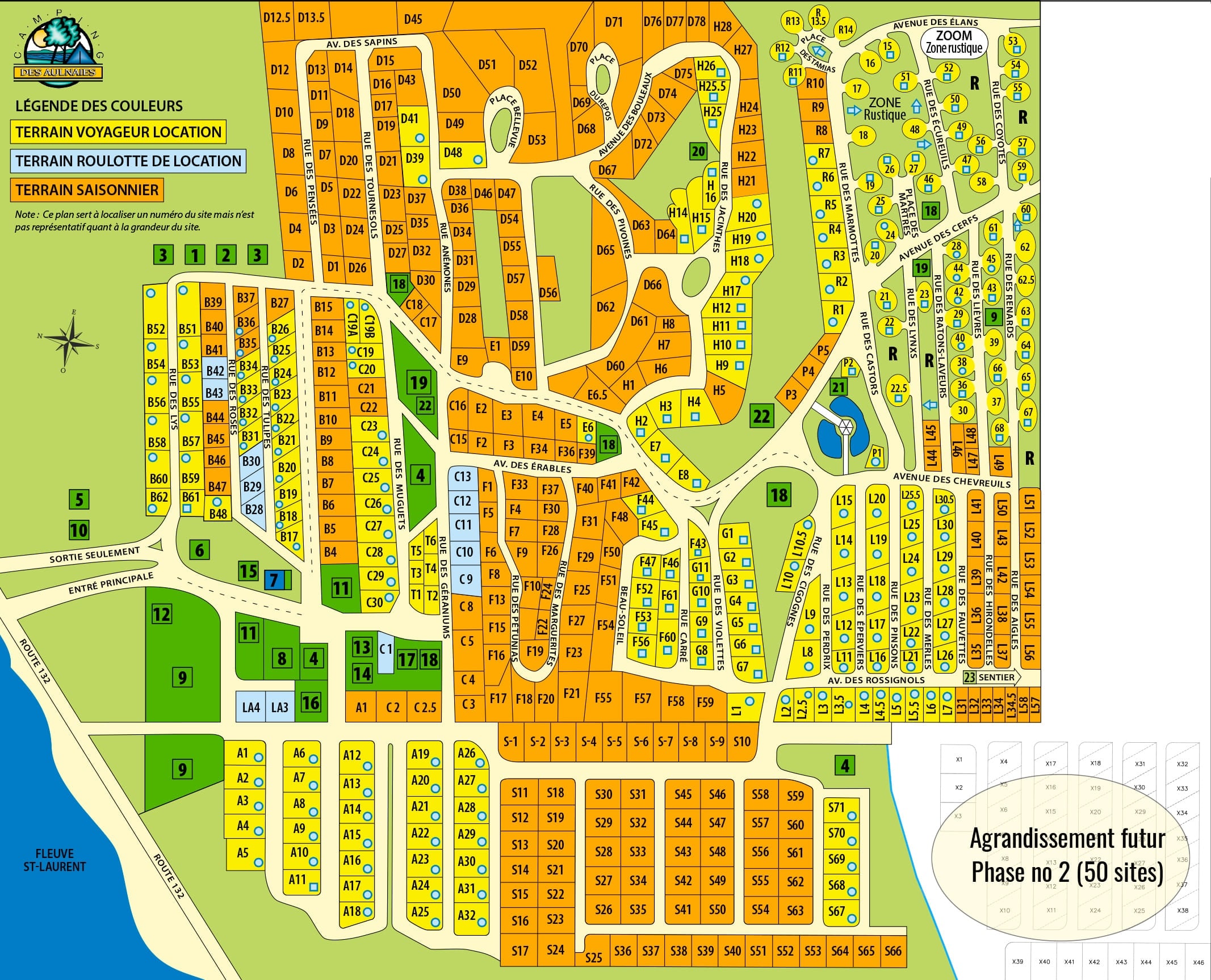 Informations. Le camping des Aulnaies est réparti sur trois (3) paliers en hauteur.